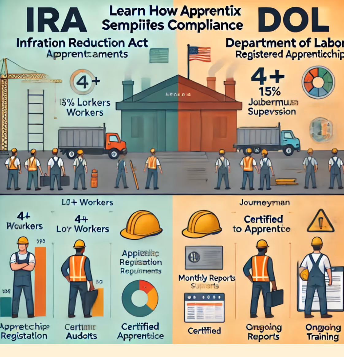 The Complete IRA Compliance Guide walks you through all the Prevailing Wage and Apprenticeship requirements specific to the Inflation Reduction Act. You’ll be able to take on renewable energy projects with confidence.